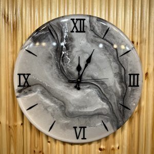 Doğal taşlı krem rengi epoksi saat, 45 cm